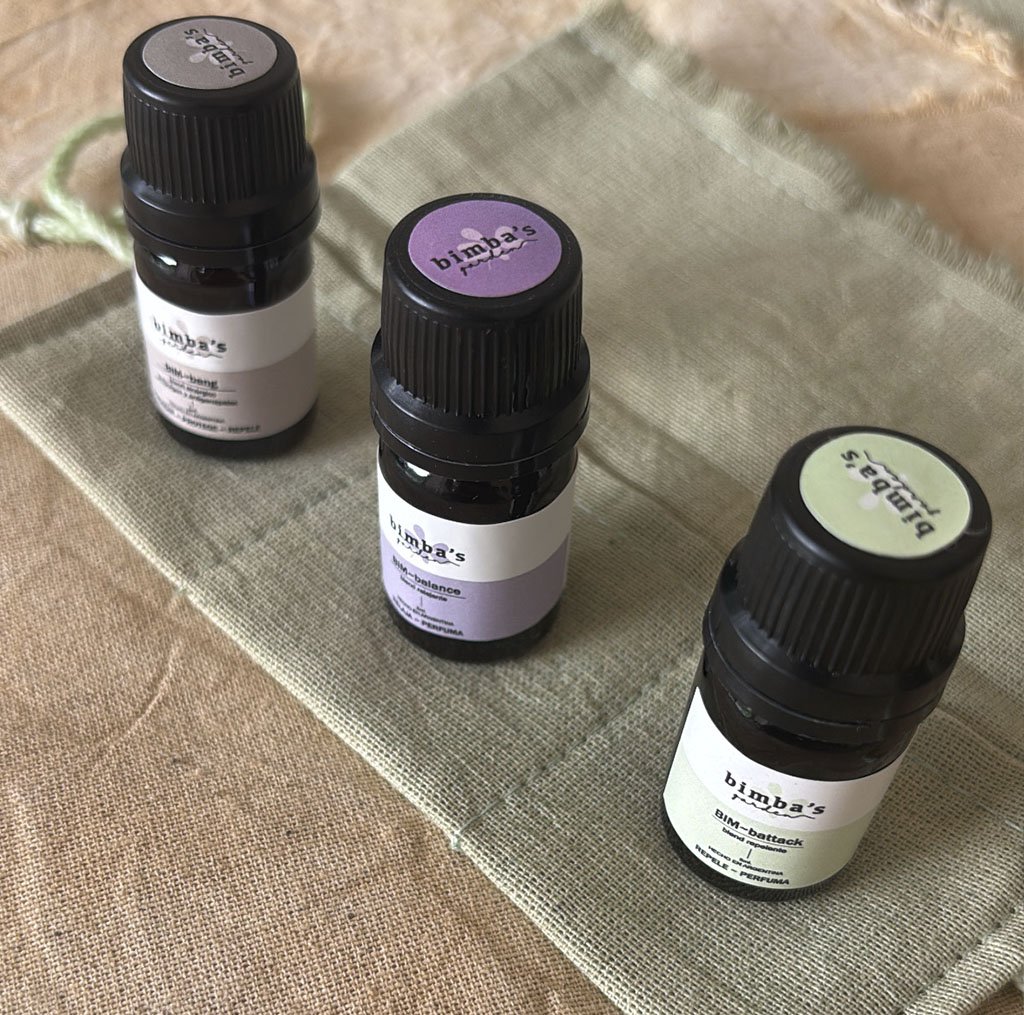 BIM-balance (blend relajante): mezcla de aceites esenciales relajantes (lavanda, incienso y patchouli) y aceite de almendras dulces.